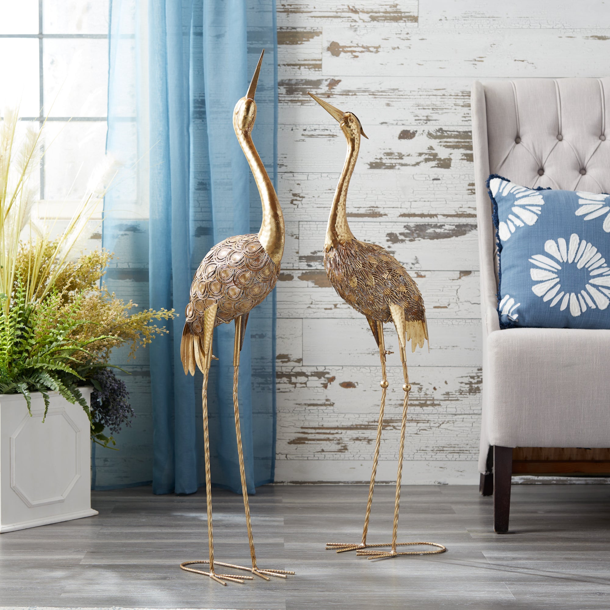 Carved Wood Sea Bird with Metal Stand (Set of 2)