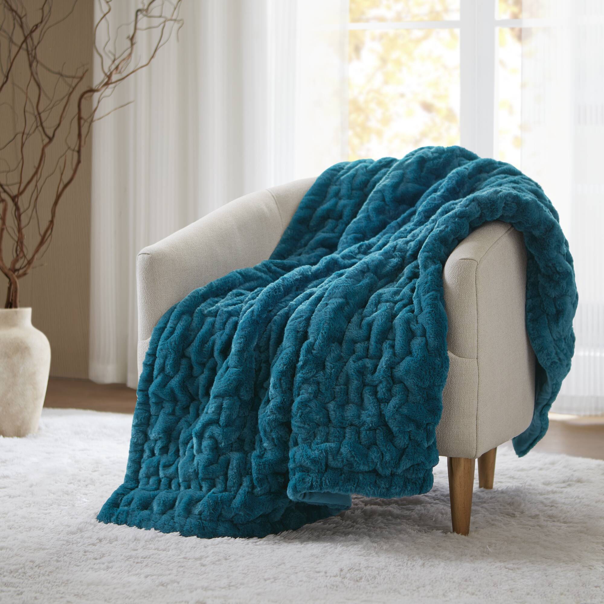 Ruched Fur Oversized Faux Fur Throw