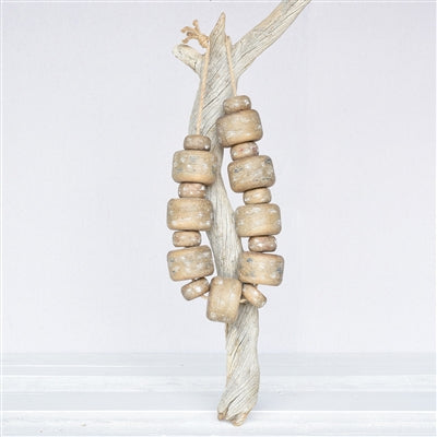 Varying sizes of Kiri Wood beads are strung together in this over-sized decorative strand to add a fun pop of interest to a door knob, a chair rail or hung on the wall with a forged iron nail.