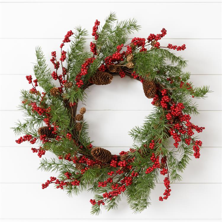 This beautiful wreath is ready to steal the show! With its wispy Scottish pine needles, red berries and carefully placed pinecones it has all the makings of a winter wonderland!