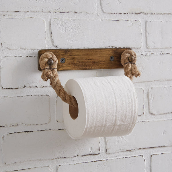 Just because it is bathroom decor, does not mean it can't be cute! This toilet paper holder is a fun way to organize your toilet paper. Item features an elegant antique brass plate with jute rope. To hang, use a screw with its two screw holes.