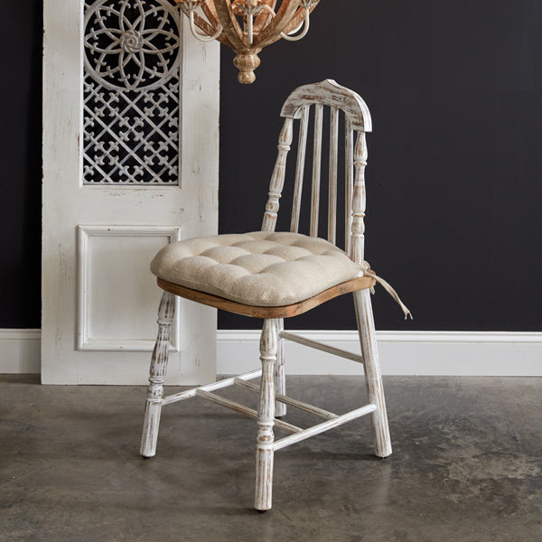 Balancing rustic and traditional elements, our Canterbury Countryside Chair is the ideal farmhouse chair. This mango wood chair features a tufted, prefilled cotton cushion with ties. Pair with our Canterbury Countryside Table (510735). Real wood is a product of nature, and as such, no two pieces are alike. Variations in grain, patterns, and color are to be expected and help create a beautiful and unique one-of-a-kind piece. This item comes fully assembled.