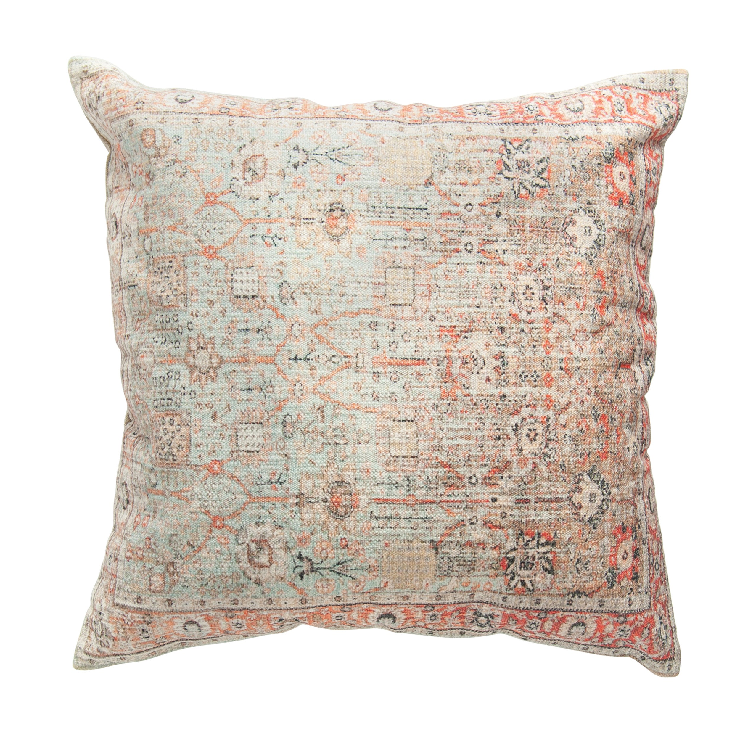 Bring old world charm to the home with this heavily distressed vintage style pillow. Faded colors create a feeling of historic elegance from years gone by. Pair with other vintage pieces for a complete and cohesive look.
