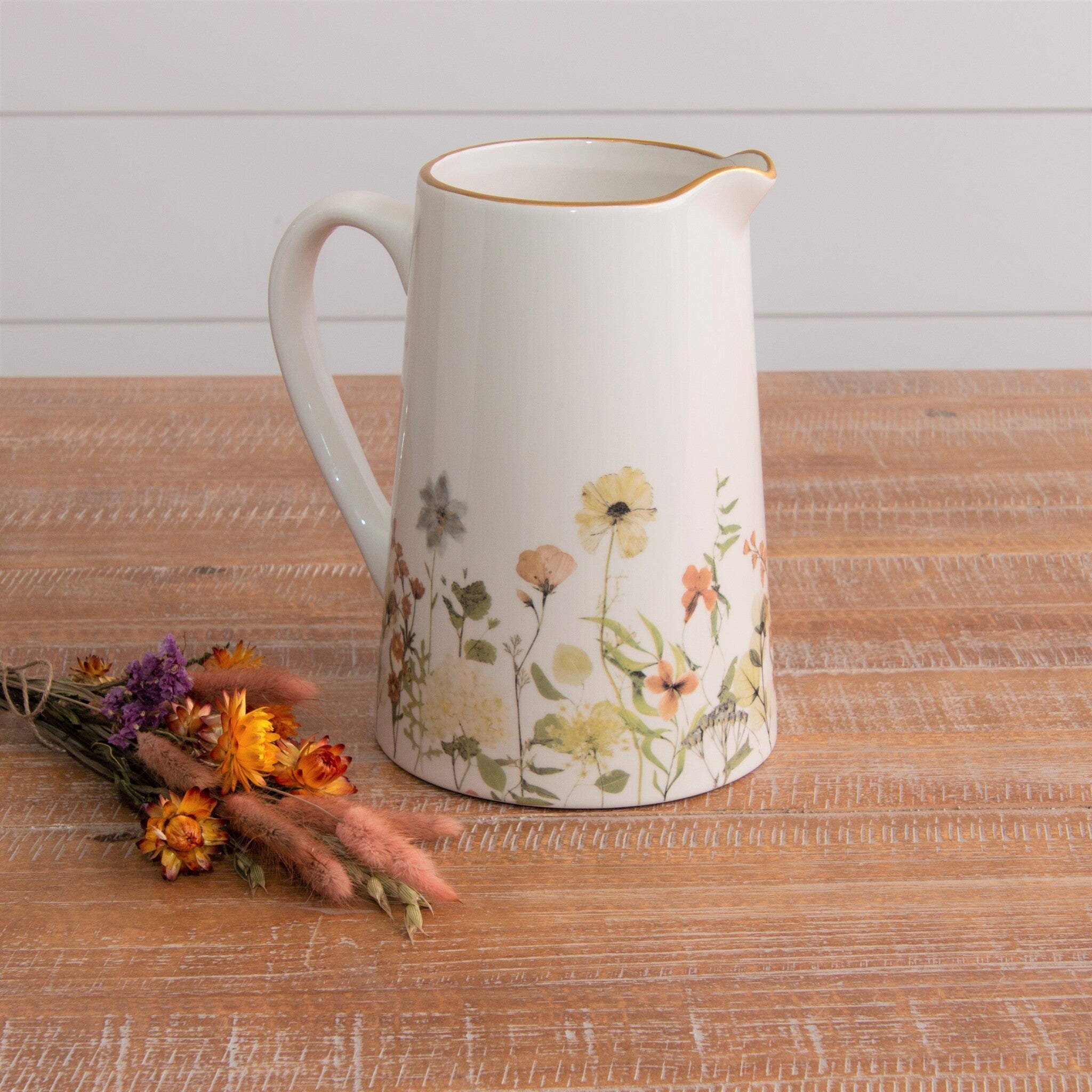 Dried Flower Pitcher With Gold Rim