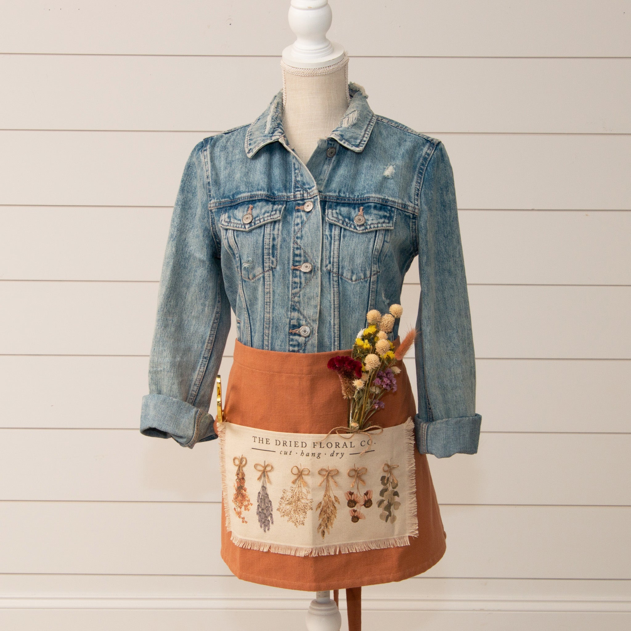 The Dried Floral Co Half Apron is a must-have for any home chef. Crafted from 100% cotton, it features two pockets to hold all your cooking essentials. With its charming floral pattern and adjustable ties, you'll love its chic look and adjustable fit!