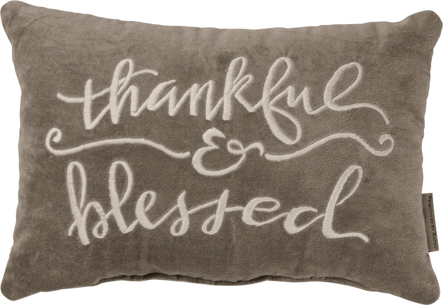 A luxe velvet pillow that lends an embroidered "Thankful & Blessed" hand lettered sentiment. The Thankful And Blessed pillow complements well with existing decor style or coordinating design pieces for a charming home accent. Includes a zipper to easily remove and clean cover.