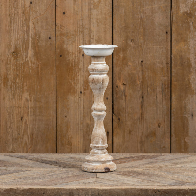 This Wood Spindle Candlestick w/ Metal Holder is the perfect combination of form and function. Its unique wooden candle holder provides an eye-catching look, while the metal pillar candle tray provides reliable support for your candles.